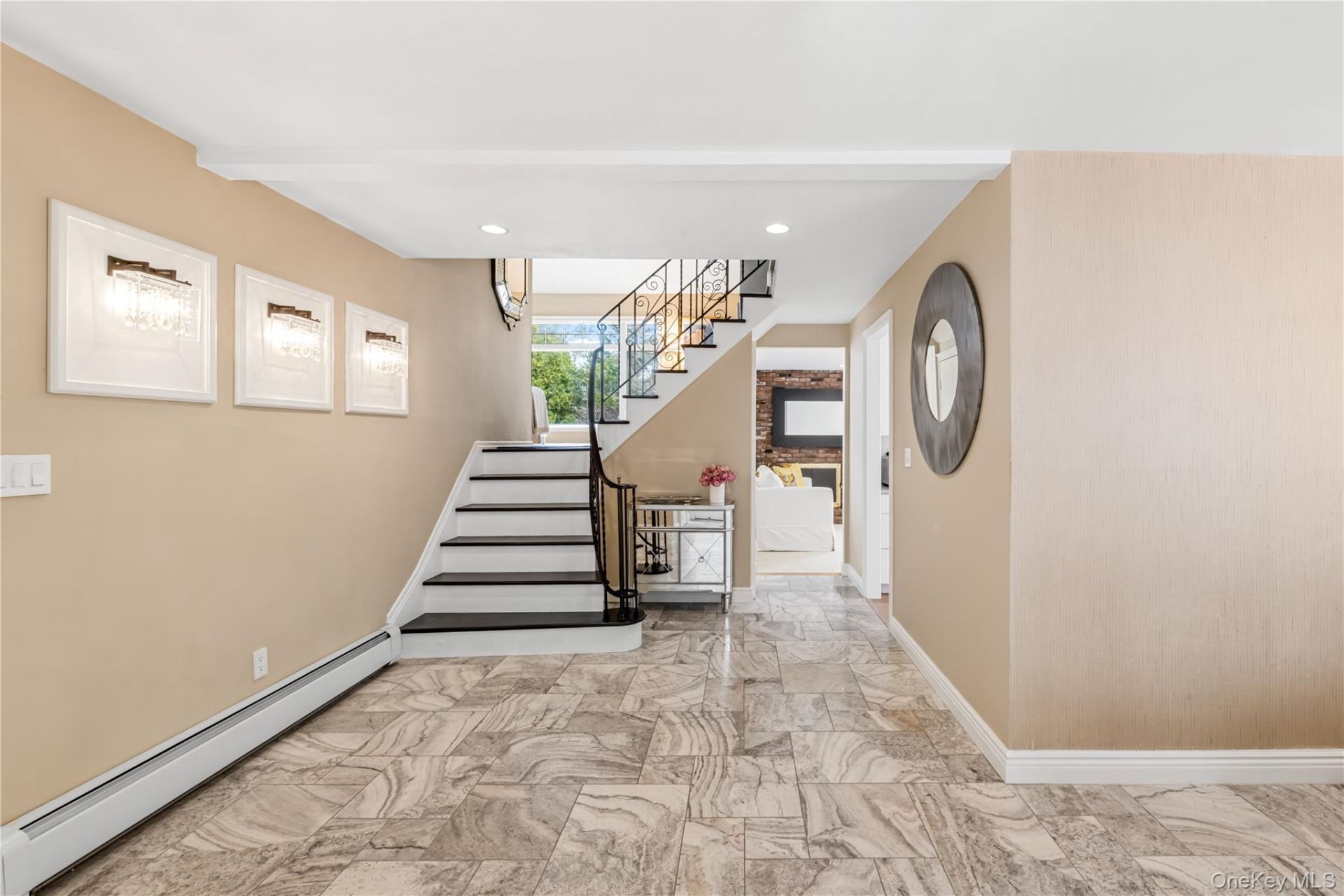 This home truly has it all. Set midblock on a quiet tree-lined block in the prestigious Jericho Union Free School District, this stunning 6-bedroom, 4-bathroom residence delivers space, elegance, and versatility in one incredible package. The crown jewel is the fully independent Private First Floor Suite with its own separate entrance, bedroom, half bath, bonus living space, and flexible area-ideal for multigenerational living, guests, or in-law use.Sun-drenched living spaces with oak hardwood floors, a welcoming foyer, and thoughtful flow create warmth throughout. The show-stopping Chef's Kitchen features luxurious Carrara marble countertops, top-of-the-line Fisher & Paykel appliances, and beautiful Visual Comfort lighting, flowing seamlessly to a formal dining room perfect for unforgettable celebrations.Step outside to your own private backyard retreat featuring a heated 18' x 38' in-ground pool, ideal for entertaining, play, and relaxation. Smart-home technology, fiber-optic readiness, and brand-new central air complete this move-in-ready gem. Nothing left to do but move in and start making memories. Extraordinary space. Timeless elegance. Private showings by appointment. Some images are virtually staged. Pool photos from last summer.