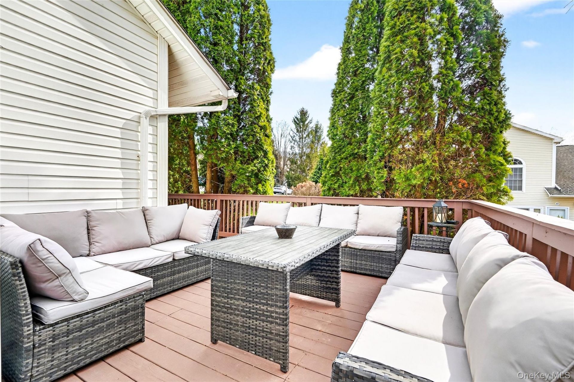 Welcome to 41 Pembrooke Court, a desirable corner-unit townhouse located in the sought-after Highfields community of Putnam Valley, offering exceptional privacy and a spacious, move-in ready layout across three levels. This 2-bedroom home lives like a 3-bedroom with flexible space throughout. The main level features an open-concept design with a seamless flow between the kitchen, living room, and dining area, creating an ideal setting for both everyday living and entertaining. A first-floor bedroom, currently utilized as a home office, is complemented by a full bathroom for added convenience. Sliding glass doors from both the living room and dining area lead to a wraparound deck, providing a perfect extension of the living space and a private outdoor retreat. The second level offers a well-appointed primary bedroom with vaulted ceilings that create an expansive feel along with an additional flexible room ideal for a home office or guest space. A full bathroom with an oversized walk-in shower enhances the level, along with a spacious walk-in closet located just outside the bathroom. The lower level offers a recreation/entertainment room with sliders to a private patio, a separate dedicated gym space, and a storage room housing the laundry and utilities.This home presents a rare opportunity to own a turnkey property in a well-designed home offering privacy, versatility, and indoor-outdoor living in a well-maintained community close to parks, shopping, and major roadways.