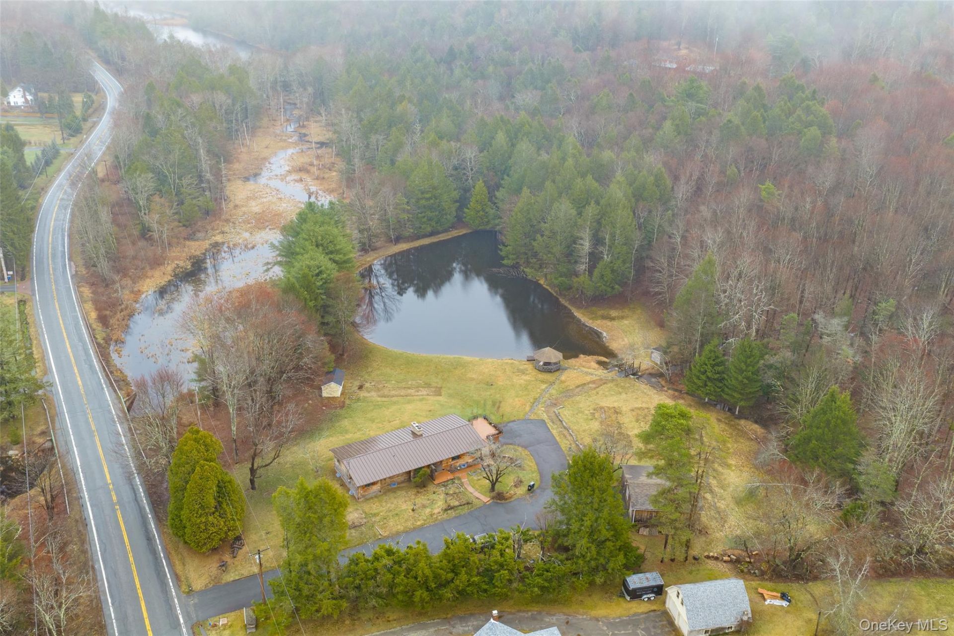 Escape to the serenity of Sullivan County with this modern and cozy 3-bedroom, 2-bathroom rustic ranch perfectly set on 11.2 scenic acres in the town of Woodbourne, NY. The open and airy living area is an entertainer's delight, featuring large windows that frame picturesque views of the property's pond and a wood-burning fireplace that makes for the perfect gathering spot. The sleek galley kitchen is designed for the culinarily inclined, boasting granite countertops, stainless steel appliances, and plenty of workspace for everyday cooking or hosting. Three sizable bedrooms provide abundant comfort for guests, while thoughtful upgrades like a new metal roof and a high-efficiency electric heating system ensure peace of mind and low maintenance for years to come. Outdoor living is just as abundant, with a patio off the kitchen, a gazebo, and a fire pit set along the lake-ideal for summer nights under the stars. Nature lovers will appreciate the hiking trails and year-round stream that run through the property, offering excellent fishing opportunities, while car enthusiasts will enjoy both the attached 1-car garage with electric vehicle charging station and a detached 2-car garage. Flooded with natural light, this home balances comfort and practicality with a true connection to the outdoors. Located just minutes from local amenities, Woodbourne and Sullivan County offer no shortage of activities and conveniences. Explore nearby hiking and outdoor recreation at Minnewaska State Park, Catskill Park, and Neversink Unique Area. Bethel Woods Center for the Arts brings world-class concerts and cultural events, while Resorts World Catskills Casino and Kartrite Indoor Waterpark provide entertainment for all ages. The area is also home to charming small-town restaurants, farmer's markets, and boutique shops, while the Delaware and Neversink Rivers provide endless opportunities for kayaking, tubing, and fishing. All new Anderson Windows.